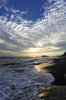 | (審査員からのコメント) 由比ヶ浜に集まる人々を花に例える藤井さんのやさしさが、写真の隅々に表れています。 夕方の淡い光の微妙な美しさに敏感に反応してシャッターを切りました。 使用したレンズの焦点距離もぴったりですよ。 こんなきれいで楽しい浜に私も行ってみたいと思わせる、ドラマを感じさせる写真です。 |